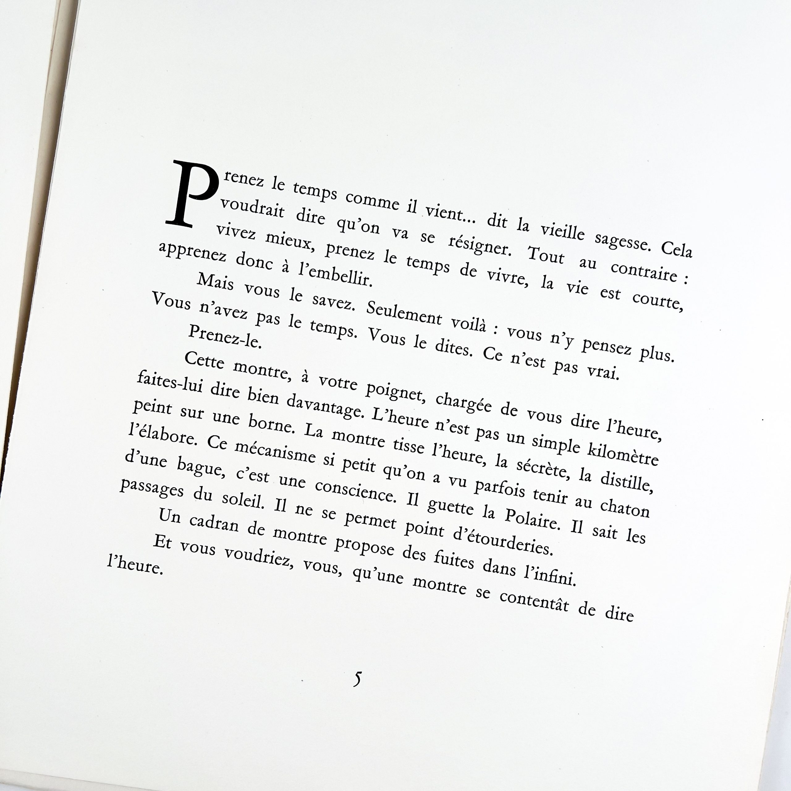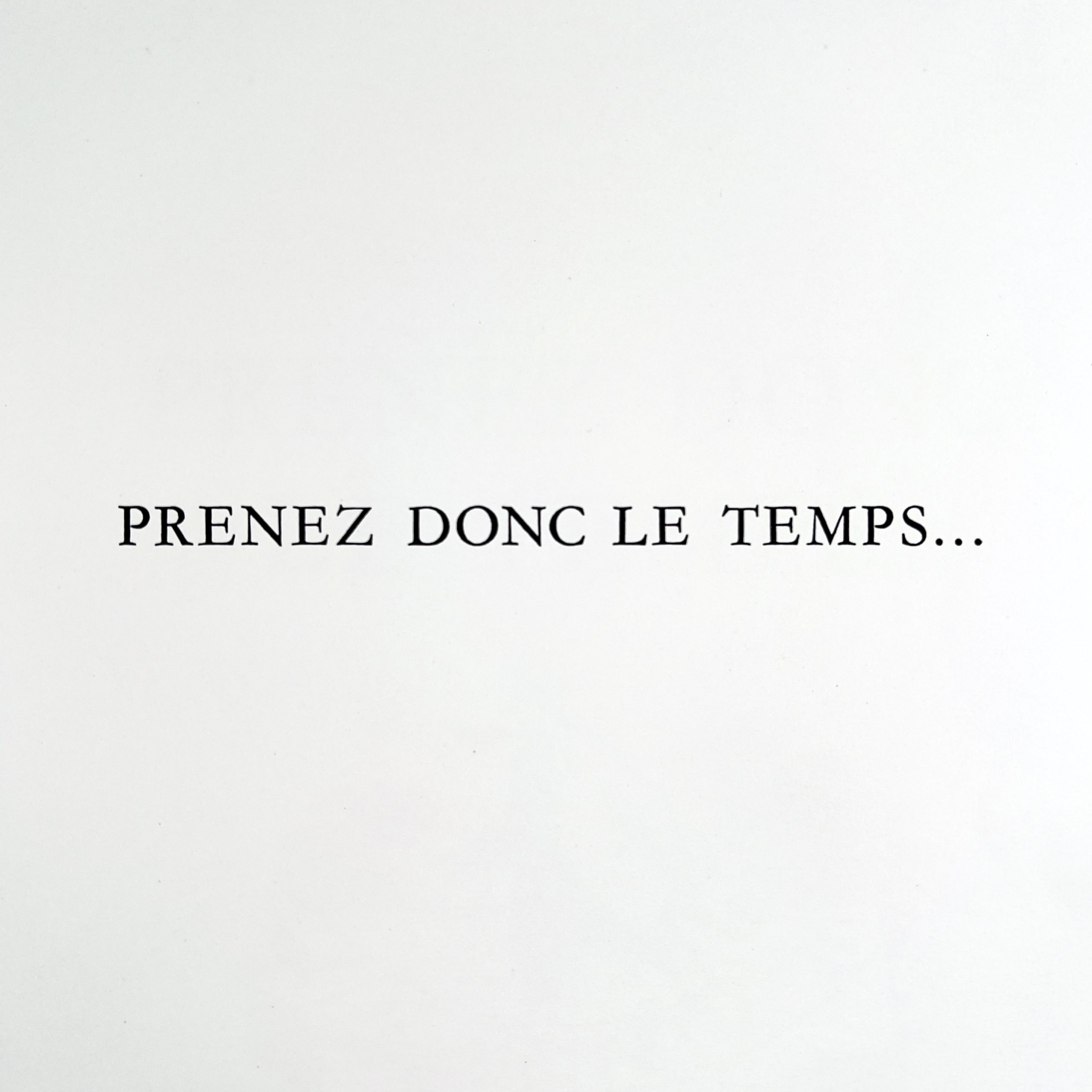 « Prenez le temps comme il vient… dit la vieille sagesse. Cela voudrait dire qu’on va se résigner. Tout au contraire : vivez mieux, prenez le temps de vivre, la vie est courte, apprenez donc à l’embellir. Mais vous le savez. Seulement voilà : vous n’y pensez plus.
