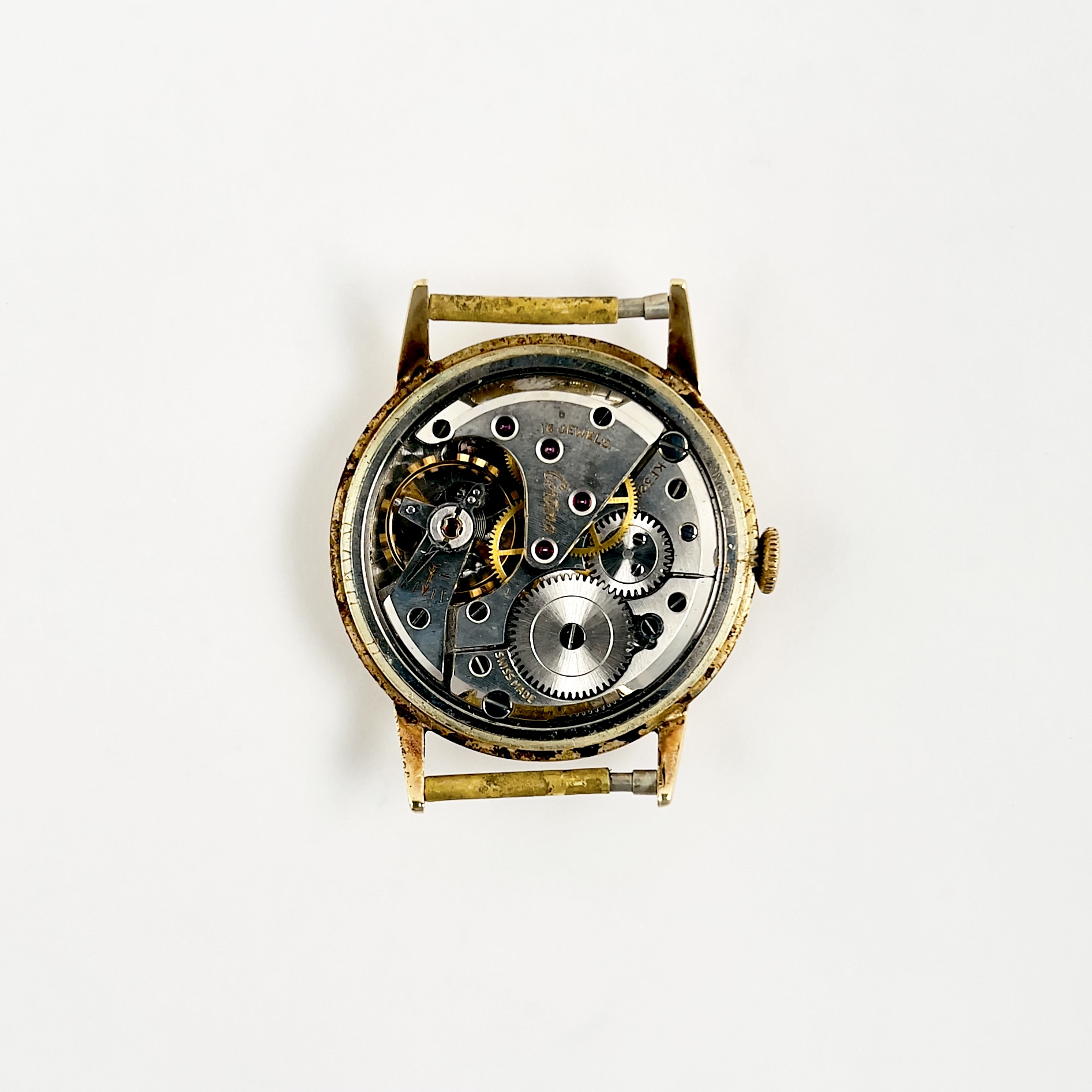 Cet exemplaire est dans un très bon état pour son âge. Le boîtier est plaqué or et son fond en acier inoxydable.