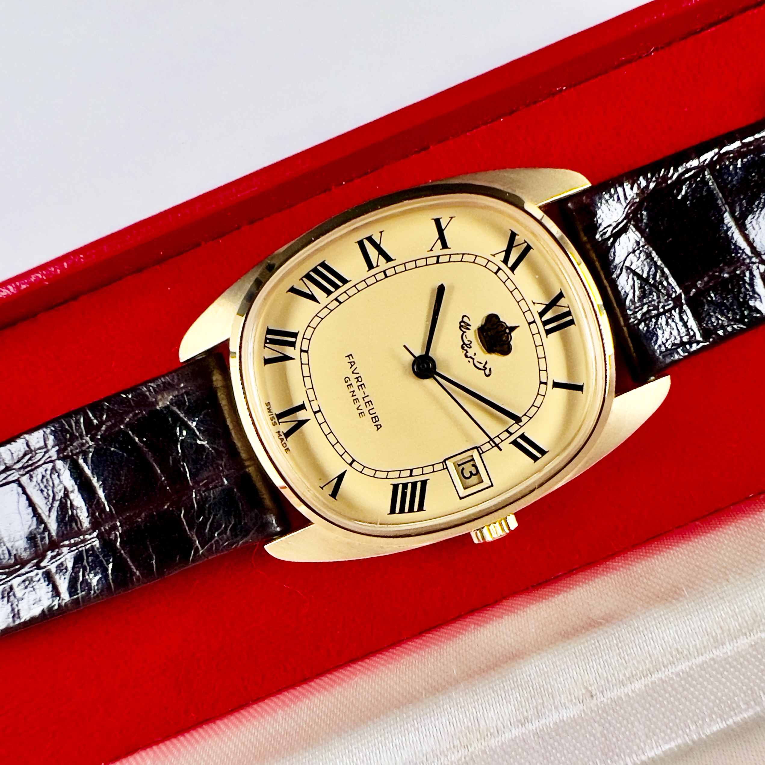 Ce type de montre était courant dans les années 1960 à 1980, notamment auprès de marques suisses comme Favre-Leuba, Omega, ou Longines, qui réalisaient des éditions limitées ou personnalisées pour des gouvernements ou des institutions royales du Golfe.